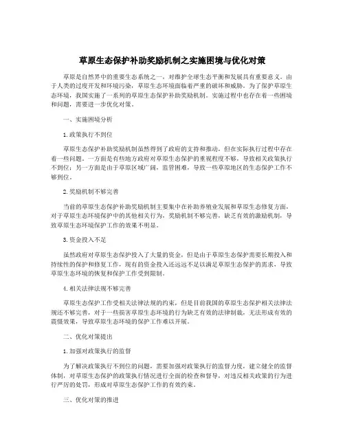 草原生态保护补助奖励机制之实施困境与优化对策草原是自然界中的重要生态系统之一,对维护全球生态平衡和发展具有重要意义。