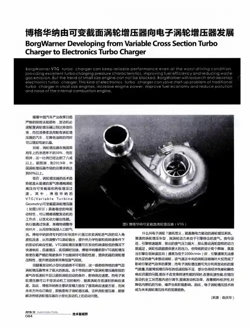 排量大功率的目的。涡轮增压发动机的增压器由排气能量驱动,很显然这需要一定的排气能量。当发