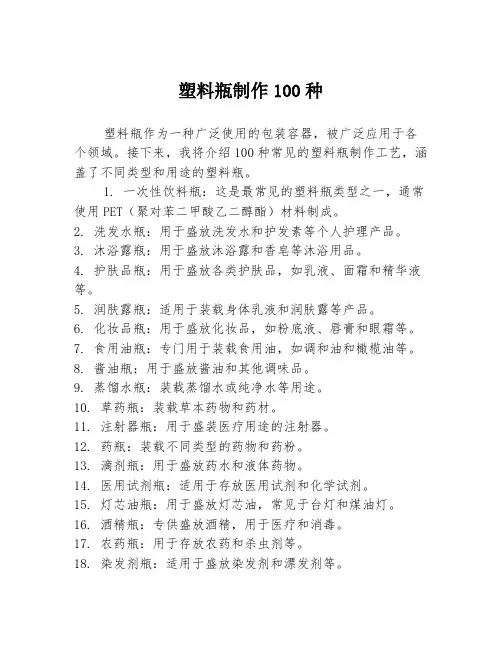 在市场上,有许多不同材质的塑料瓶供我们选择,如聚乙烯(PE)、聚丙烯(PP)、聚酯(PET)等。