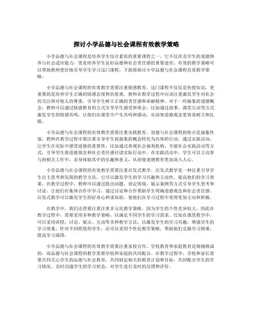 探讨小学品德与社会课程有效教学策略小学品德与社会课程是培养学生综合素质的重要课程之一,它不仅涉及学生的道德修养与社会适应能力,更是培养学生良好品德和社会责任感的重要途径。