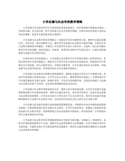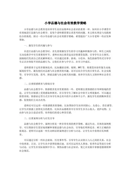 小学品德与社会有效教学策略探析品德与社会是小学教育中非常重要的一部分,对学生的综合素质培养具有重要的影响。