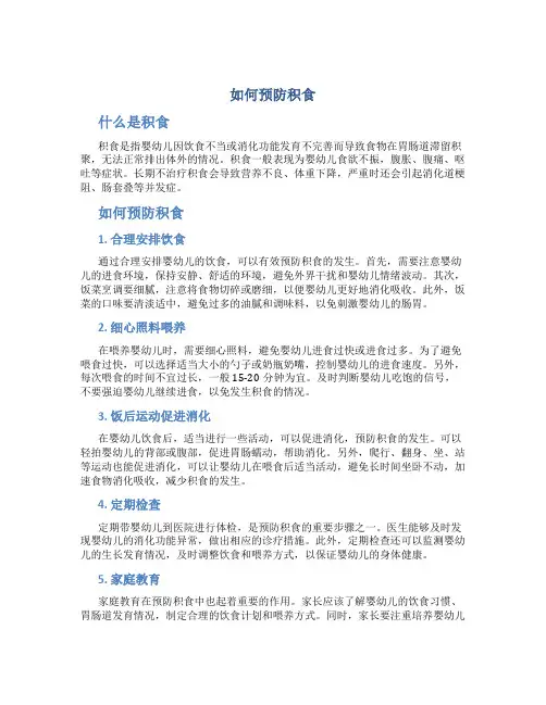 如何预防积食什么是积食积食是指婴幼儿因饮食不当或消化功能发育不完善而导致食物在胃肠道滞留积聚,无法正常排出体外的情况。