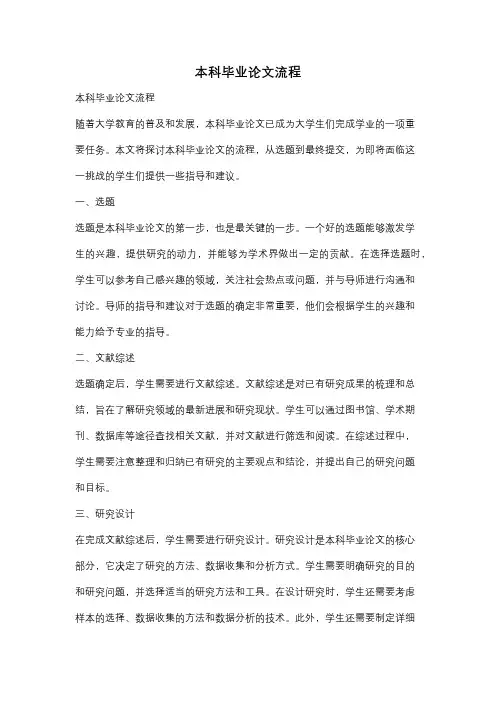本科毕业论文流程本科毕业论文流程随着大学教育的普及和发展,本科毕业论文已成为大学生们完成学业的一项重要任务。