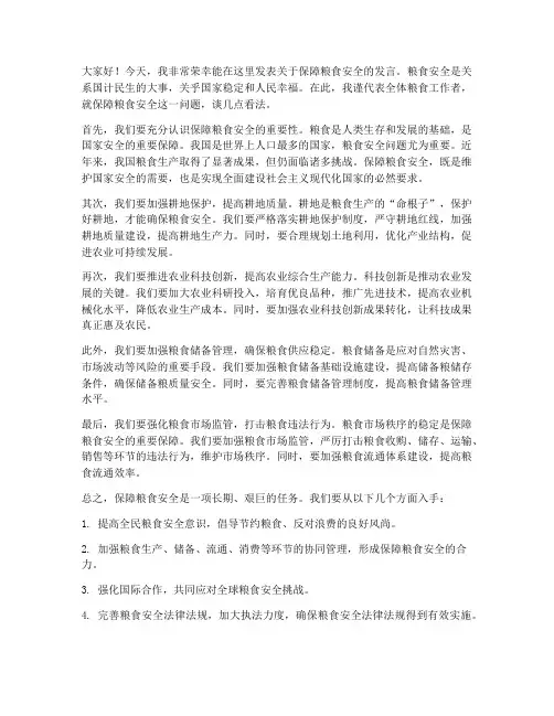 一、粮食安全的重要性粮食是人们维持生存和健康所必需的重要食物之一,国家的粮食安全直接关系到人民的生活质量和社会稳定。