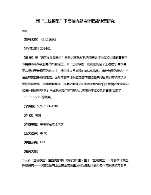 计路径优化研究——以新“三线模型”为基础4.新“三线模型”理论下高校内部审计营销研究5.基于新“三线模型”的高校内部审计高质量发展路径研究