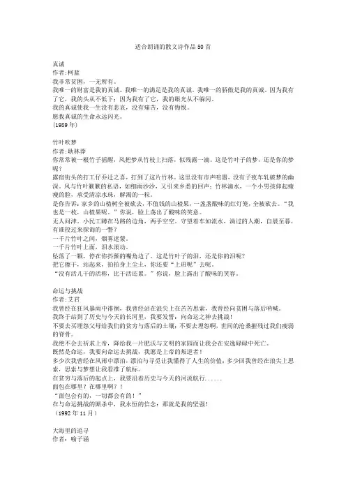 适合朗诵的散文诗作品50首真诚作者:柯蓝我非常贫困,一无所有。