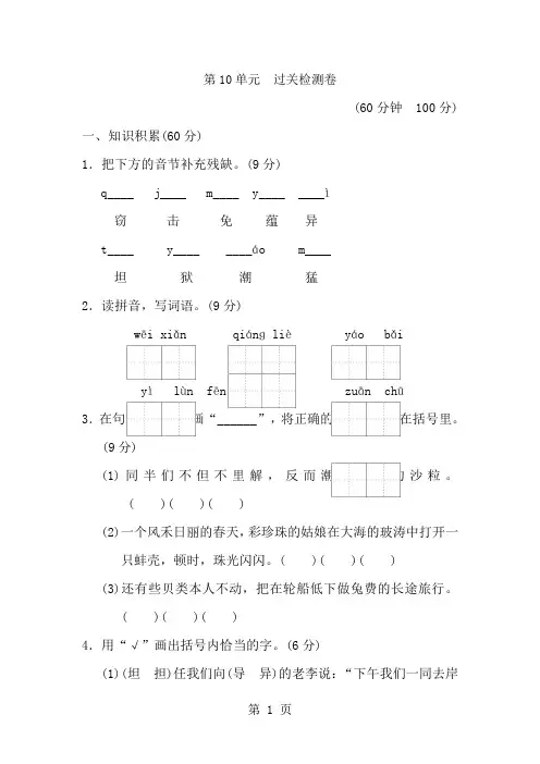 第10单元过关检测卷(60分钟100分)一、知识积累(60分)1.把下方的音节补充残缺。