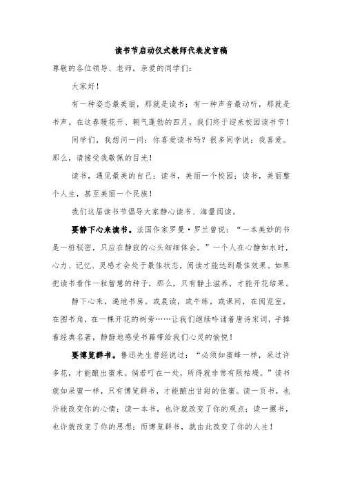 大家好!今天,我们在这里隆重举行教师读书启动仪式,这是一次激发智慧、启迪心灵的重要活动。