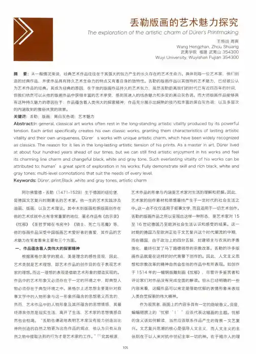 浅述阿尔布雷希特·丢勒宗教绘画中的基本技法和相关艺术意义【摘要】阿尔布雷希特·迪勒的宗教绘画是其艺术生涯中的重要组成部分,通过独特的基本技法和艺术意义,展现了其独特的艺术风格。