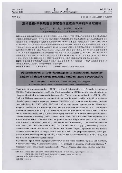 珍重生命远离香烟——香烟中部分有害物质的分离和鉴定摘要与引言吸烟有害健康,或许许多人都知道这个道理,但是香烟对人体的危害到底有多大?香烟烟雾中到底有多少有害物质?吸烟是不是仅仅危害到吸烟者个人的健康?对于这些问题,我们相信很多人都是一知半解。