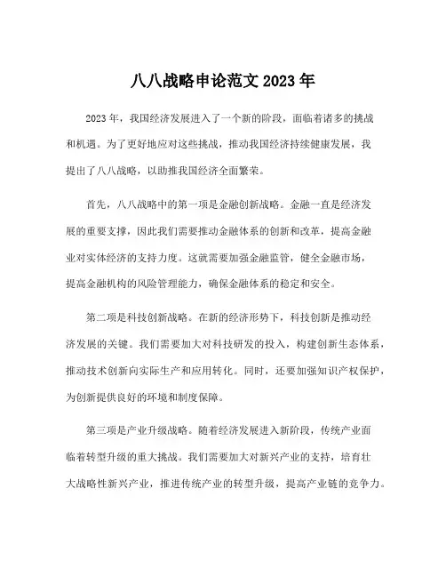 八八战略申论范文2023年2023年,我国经济发展进入了一个新的阶段,面临着诸多的挑战和机遇。