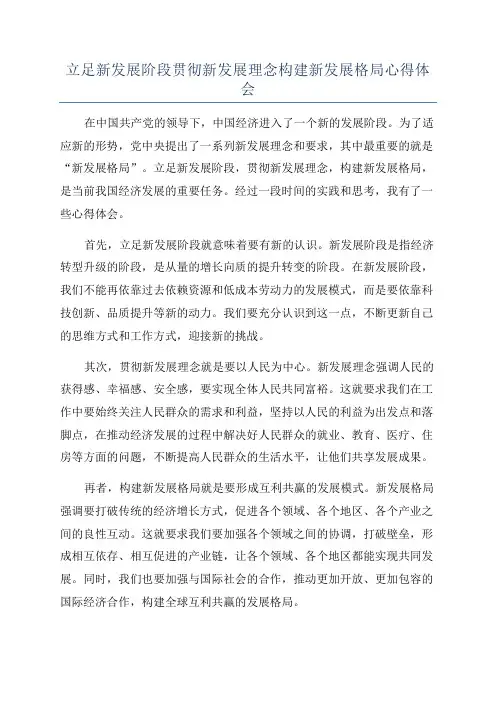 新发展格局心得体会立足新发展理念构建新发展格局心得体会新发展格局是我国经济发展进入新时期的基本思路和行动指南。