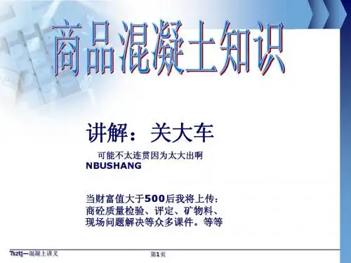 例.某框架结构工程现浇钢筋混凝土梁,混凝土设计强度等级为 C30,施工要求混凝土坍落度为30~50㎜,根据施工单位 历史资料统计,混凝土强度标准差σ=5MPa。所用原材料情况 如下: 水泥:42.5级普通硅酸盐水泥,水泥密度为ρc=3.10g /cm3,水泥强度等级标准值的富余系数为1.08;砂:中砂, 级配合格,砂子表观密度ρs=2.60g/cm3; 石:5~30mm 碎石,级配合格,石子表观密度ρg=2.65g/cm3; 减水剂: HSP高效减水剂,减水率:20% 试求: 混凝土计算配合比 解: (1)确定混凝土配制强度(fcu,0) fcu,0= fcu,k + 1.645σ= 30 + 1.645×5 =38.2 MPa (2)确定水灰比(W/C) fce = γc ×fce,k = 1.08 × 42.5=45.9MPa