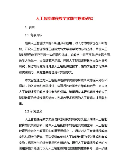 研究型教学在“仪器分析”课程中的实践探索1. 引言1.1 研究型教学概述研究型教学是一种重视学生主动参与和实践探索的教学方法。