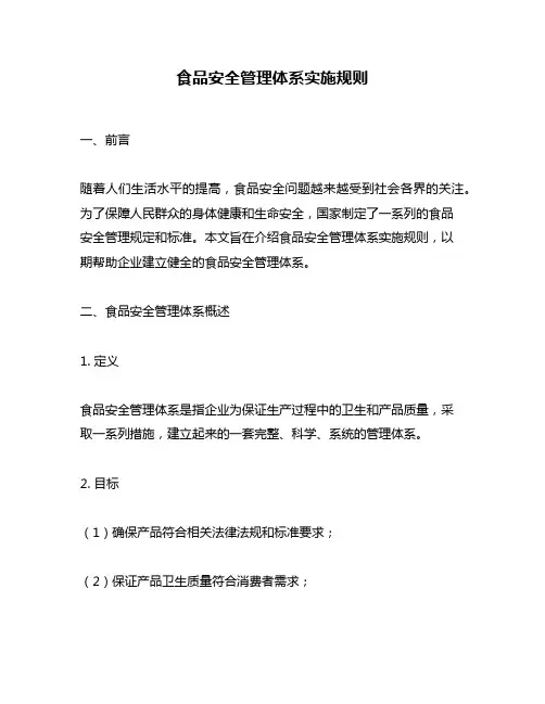 食品安全管理体系实施规则一、前言随着人们生活水平的提高,食品安全问题越来越受到社会各界的关注。