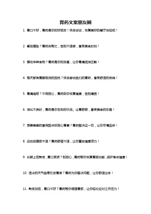 19、轻松除去胃部积食,健康享爱美好生活!20、胃部积食有良药,隔山消食解烦恼!21、隔山打牛之力,消除胃部积食。