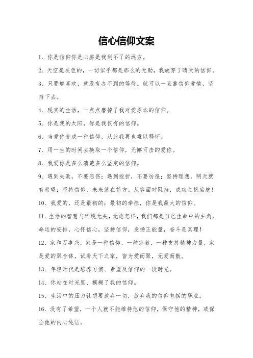 信心信仰文案1、你是信仰你是心脏是我到不了的远方。