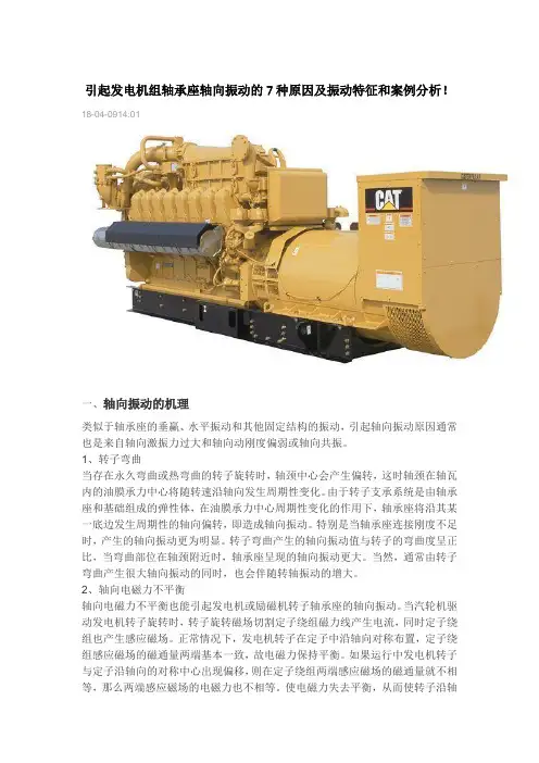 引起发电机组轴承座轴向振动的7种原因及振动特征和案例分析!18-04-0914:01一、轴向振动的机理类似于轴承座的垂赢、水平振动和其他固定结构的振动,引起轴向振动原因通常也是来自轴向激振力过大和轴向动刚度偏弱或轴向共振。