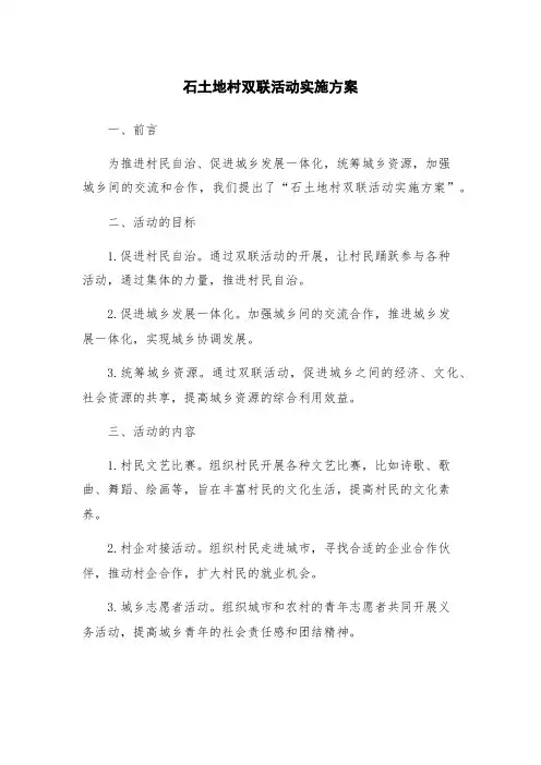城乡间的交流和合作,我们提出了“石土地村双联活动实施方案”。