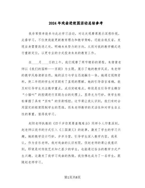 2024年戏曲进校园活动总结参考我非常荣幸能参与此次学习活动,对这次观摩课展示深感珍视。