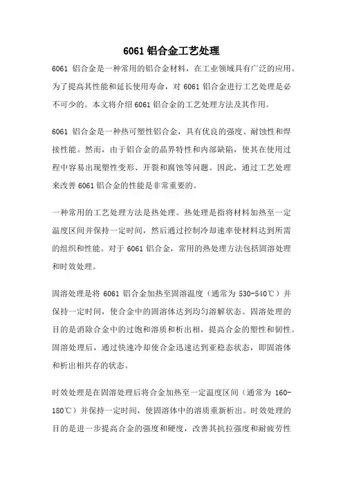 6061铝合金工艺处理6061铝合金是一种常用的铝合金材料,在工业领域具有广泛的应用。