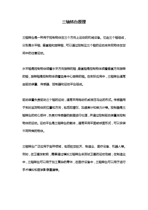 三轴转台是一种用于控制物体运动的机械结构,主要由三个轴线组成。