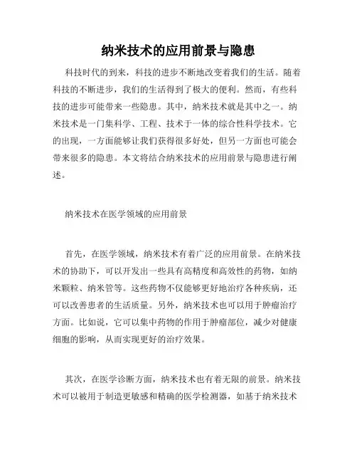 纳米技术的应用前景与隐患科技时代的到来,科技的进步不断地改变着我们的生活。
