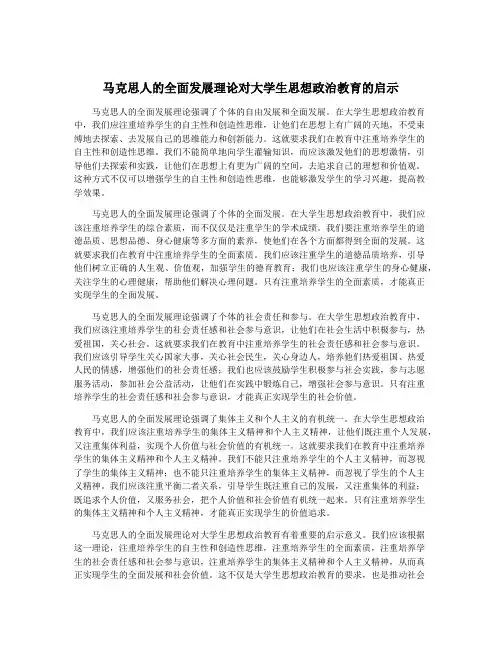 马克思人的全面发展理论对大学生思想政治教育的启示马克思人的全面发展理论强调了个体的自由发展和全面发展。