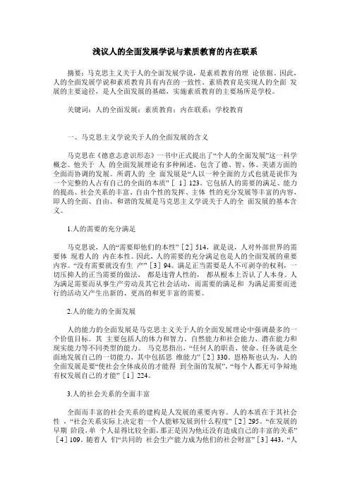 一、马克思主义的理论基础马克思主义强调人的解放和全面发展,充分体现了马克思主义的人本性和历史观。