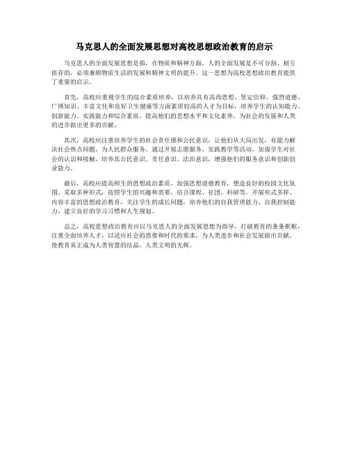 马克思人的全面发展思想对高校思想政治教育的启示马克思主义是一种关于社会发展和历史进程的理论体系,其核心思想是关注人的全面发展,即通过多维度的发展来实现人的理性、情感和身体的全方位发展。