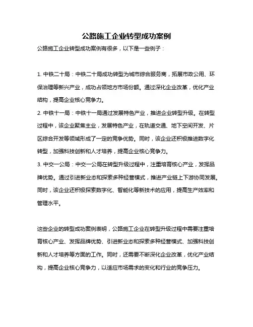 公路施工企业转型成功案例有很多,以下是一些例子: