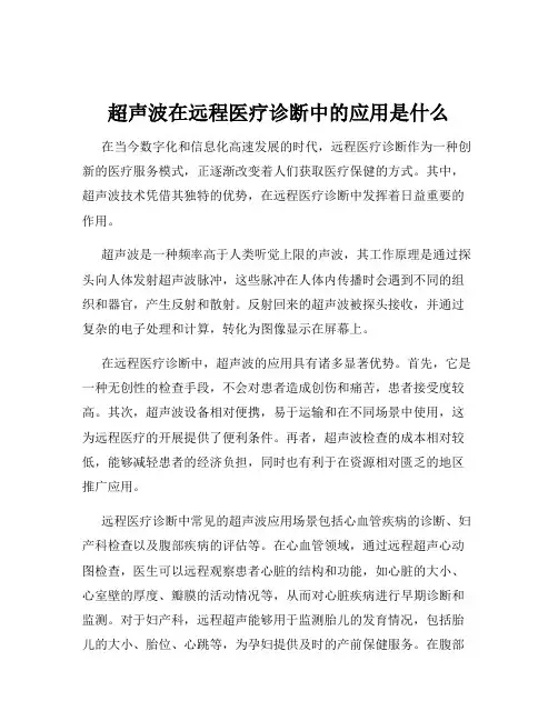超声波在远程医疗诊断中的应用是什么在当今数字化和信息化高速发展的时代,远程医疗诊断作为一种创新的医疗服务模式,正逐渐改变着人们获取医疗保健的方式。