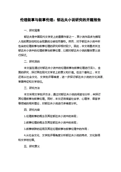 伦理叙事与叙事伦理:郁达夫小说研究的开题报告