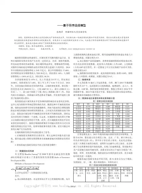 关键词:普惠;排序选择模型;区域保险中图分类号:F842.6 文献识别码:A 文章编号:1001-828X(2016)004-000359-02一、问题的提出随着我国保险业快速增长,区域发展不均衡问题日益凸显。