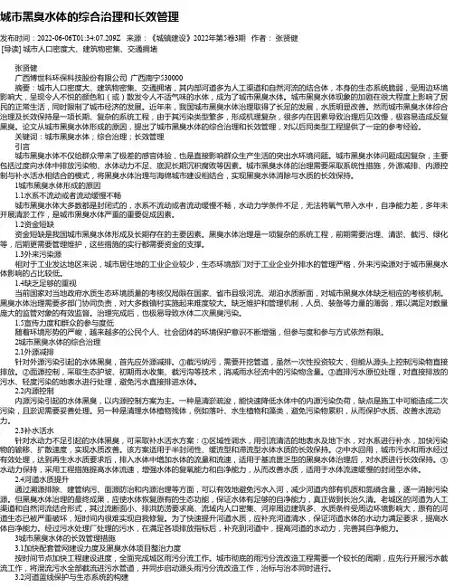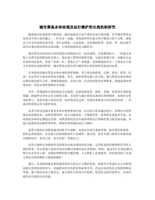 城市黑臭水体治理及运行维护的长效机制研究随着城市化进程的不断加快,城市面临着日益严重的水体污染问题,其中城市黑臭水体是其中的主要问题之一。