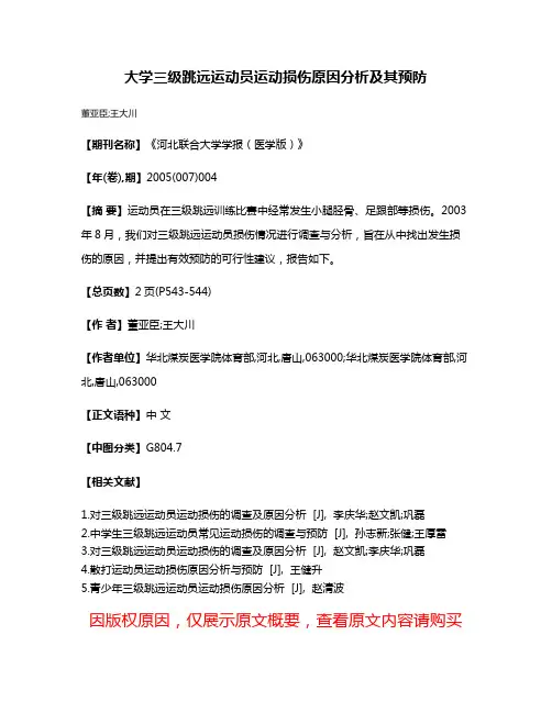 [4]郭永喜.如何预防三级跳,i ̄iJII练中的运动损伤EJ3.辽宁体育科