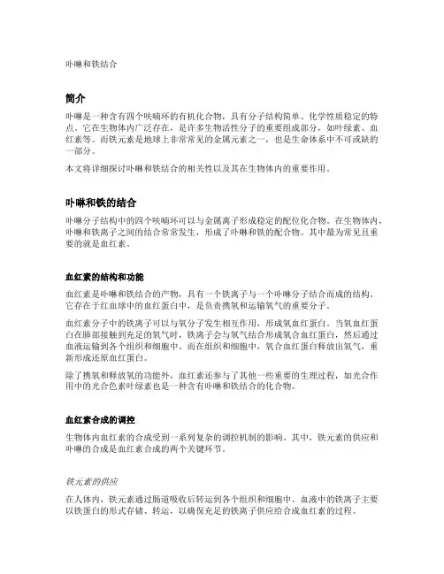 卟啉和铁结合简介卟啉是一种含有四个呋喃环的有机化合物,具有分子结构简单、化学性质稳定的特点。
