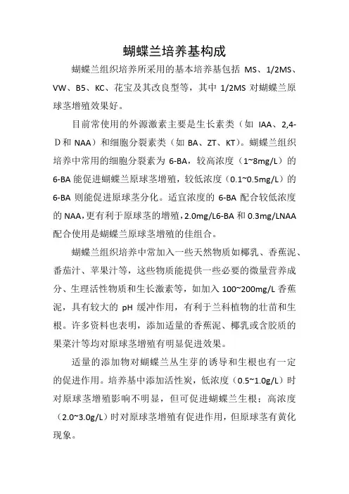 三、实习收获与反思1. 实习收获通过本次实习,我们掌握了蝴蝶兰无菌组培的基本技术,了解了蝴蝶兰的生长习性和组培过程中的注意事项。