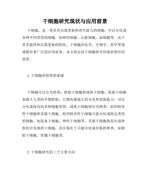 干细胞研究的现状与前途干细胞研究是一项备受关注的前沿科学,它探索着人类医学领域的新边界。