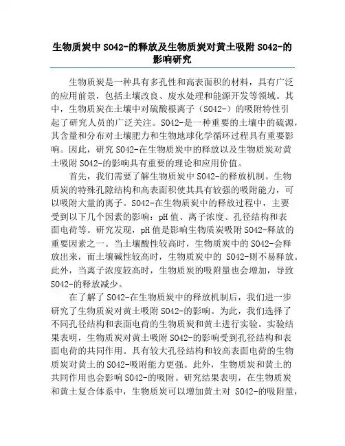 生物质炭中SO42-的释放及生物质炭对黄土吸附SO42-的影响研究生物质炭是一种具有多孔性和高表面积的材料,具有广泛的应用前景,包括土壤改良、废水处理和能源开发等领域。