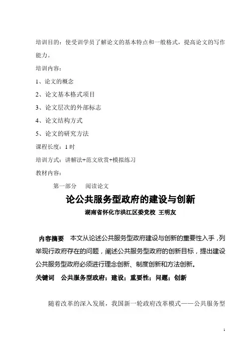 论服务型政府的创建引言服务型政府是指致力于为社会公众提供高效、优质服务的政府机构。
