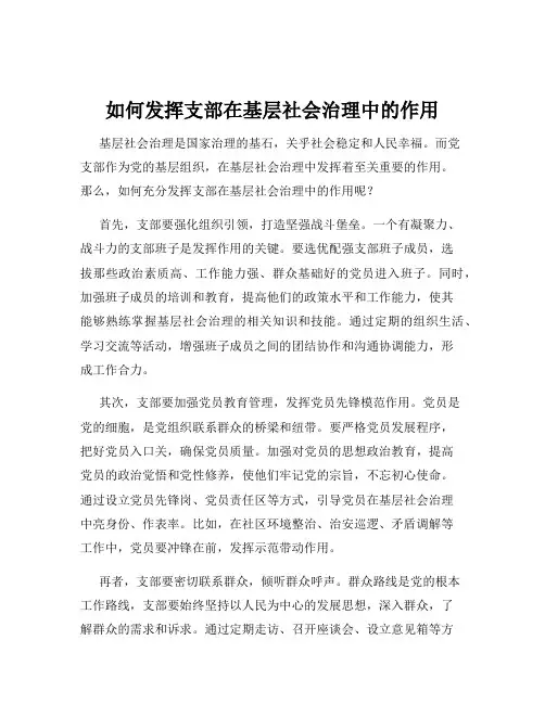 如何发挥支部在基层社会治理中的作用基层社会治理是国家治理的基石,关乎社会稳定和人民幸福。