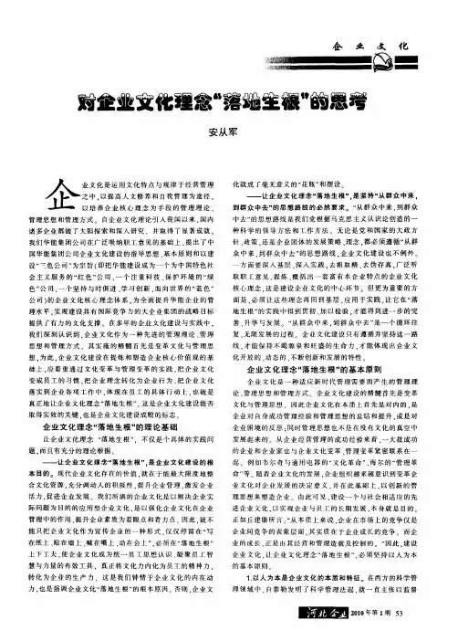 企业文化落地的思路与方法[5篇]第一篇:企业文化落地的思路与方法企业文化落地的思路与方法随着中国经济的转型,中国企业也面临着自身的转型。